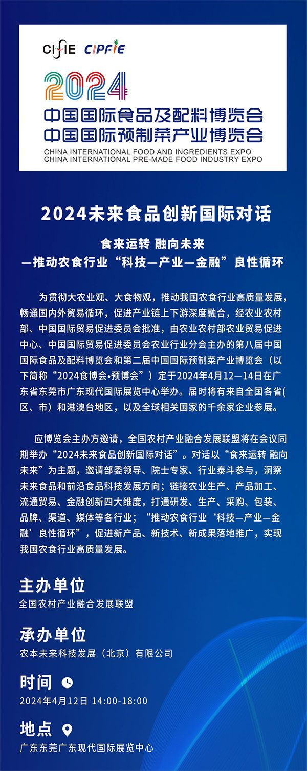 “未來食品創新國際對話”將在2024"食博會·預博會”同期舉辦!