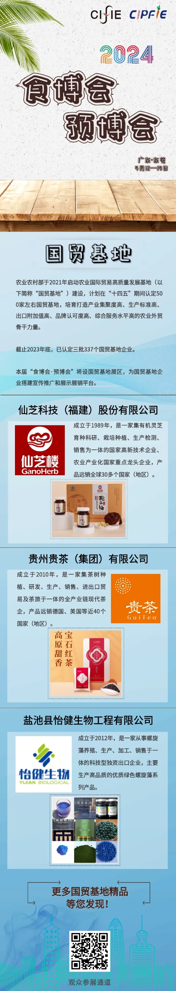 農(nóng)業(yè)國際貿(mào)易高質(zhì)量發(fā)展基地企業(yè)將亮相2024“食博會·預(yù)博會”