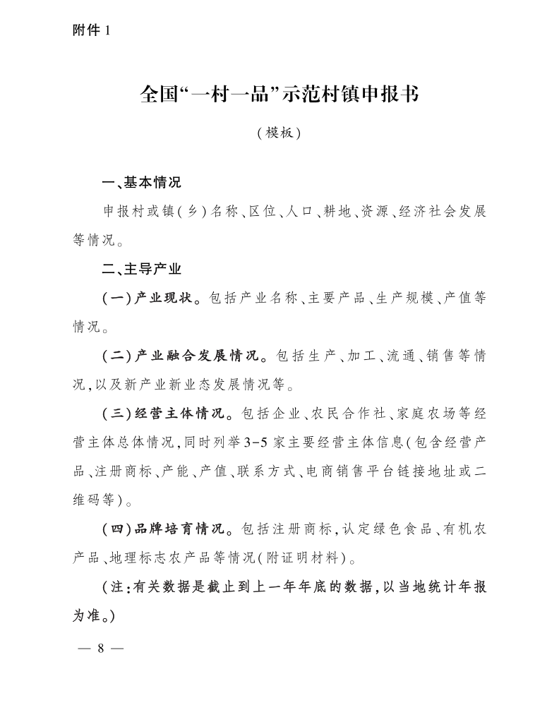 附件:1.全國“一村一品”示范村鎮(zhèn)申報書2.全國“一村一品”標識樣式