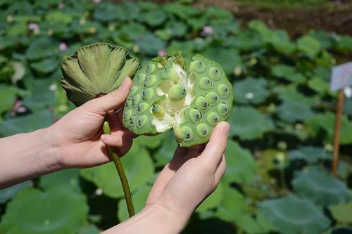 只見(jiàn)蓮農(nóng)雙手翻騰,飛速把蓮子從蓮蓬上剝離,然后用裁蓮刀在蓮子的腰部輕輕地向前推割,輕重得宜,不傷蓮肉,蓮殼即一分為二,籽殼分家。接著又把蓮肉上的膜質(zhì)種皮用拇指、食指輕輕揉凈,再用一根特制的通芯蓮簽,對(duì)準(zhǔn)蓮子的胚根突起處,靈巧利索地一捅,把碧綠的蓮芯捅出來(lái)了。這樣,一個(gè)皮凈肉白、粒大如珠、中間有孔、上下通氣的蓮子就躍然眼前,通芯白蓮也因此得名。