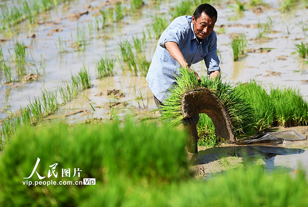 立夏,四川省南充市蓬安縣的農民搶抓農時進行插秧作業,田間地頭一派繁忙。